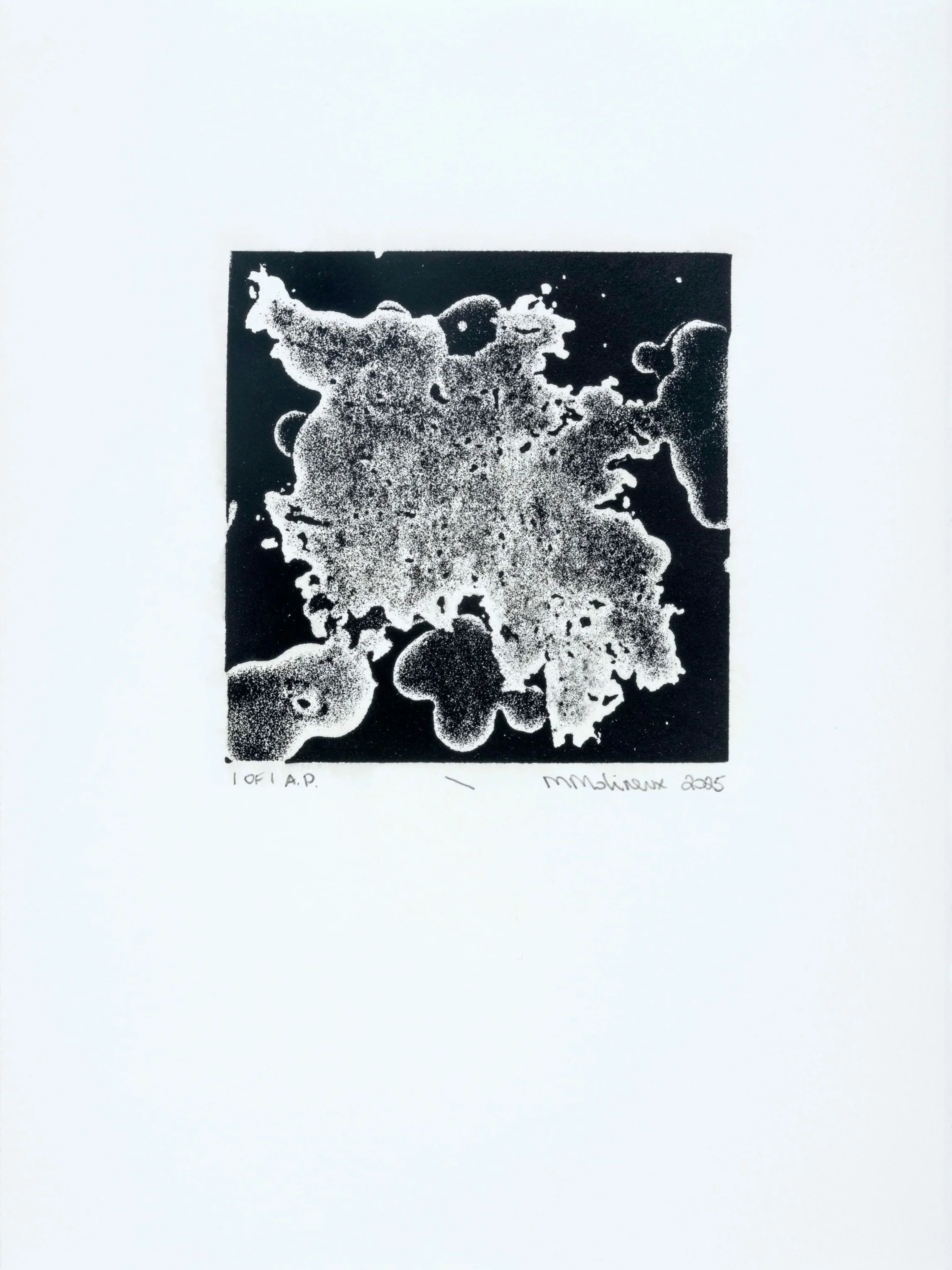 Molineux’s work often draws on personal experience, moving between narrative and more open, non-discursive approaches to image-making. He is interested in the agency of materials within the print process, exploring how surface, ink and substrate can shape meaning alongside, and sometimes in place of, explicit storytelling.