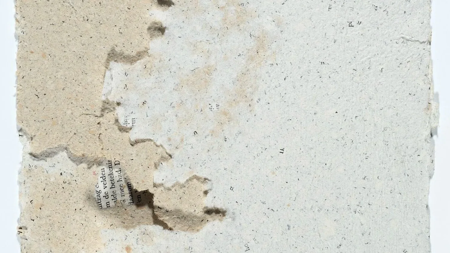 Born in the Netherlands and arriving in Brisbane in 1980, Verhoef’s practice is also shaped by the dislocation of migration and the enforced loss of language and culture. His hand-made papers, created from both Dutch and Australian books, fuse these materials as a way of addressing bi-cultural hybridity and a long-standing sense of being an outsider. The torn edges and visible imperfections in the paper become a direct metaphor for fracture, belonging and the “square peg in a round hole” narrative that has informed his life. Recent bodies of work, including a 2024 solo exhibition of fire-formed monotypes, extend these concerns to explore communication, desire and relational breakdown within queer lives.